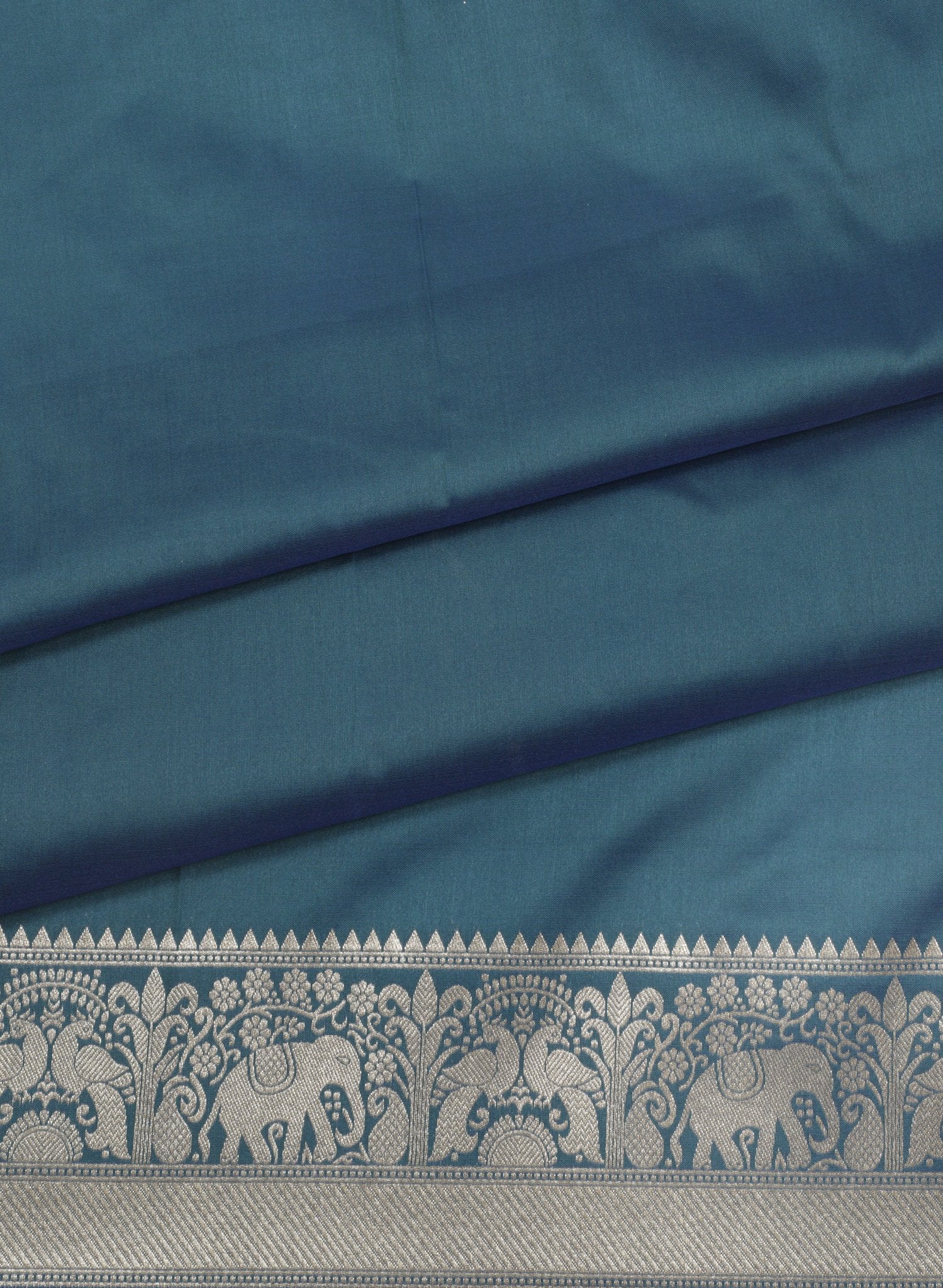Elegant Weaves Blue Silk Saree with Silver Zari Elephant Motifs