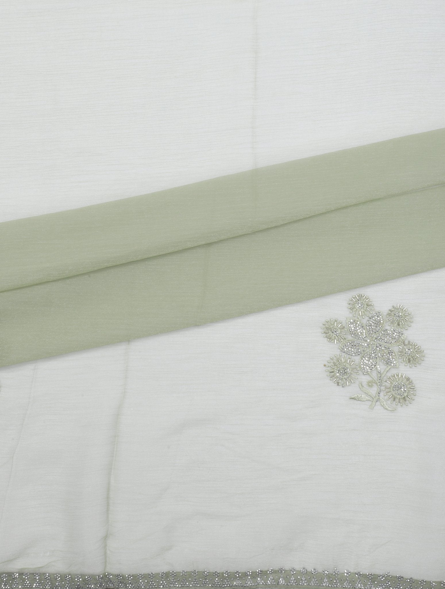 Elegant Weaves Light Green Chiffon Embroidered Saree