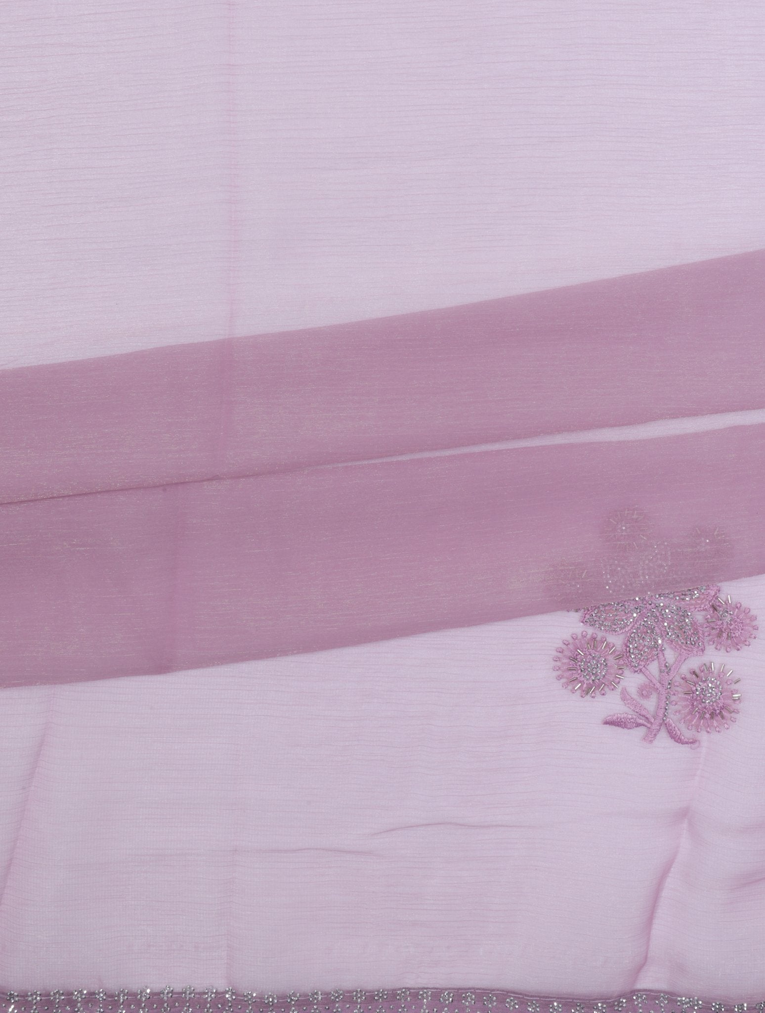 Lavender Chiffon Embroidered Saree with Silver Accents