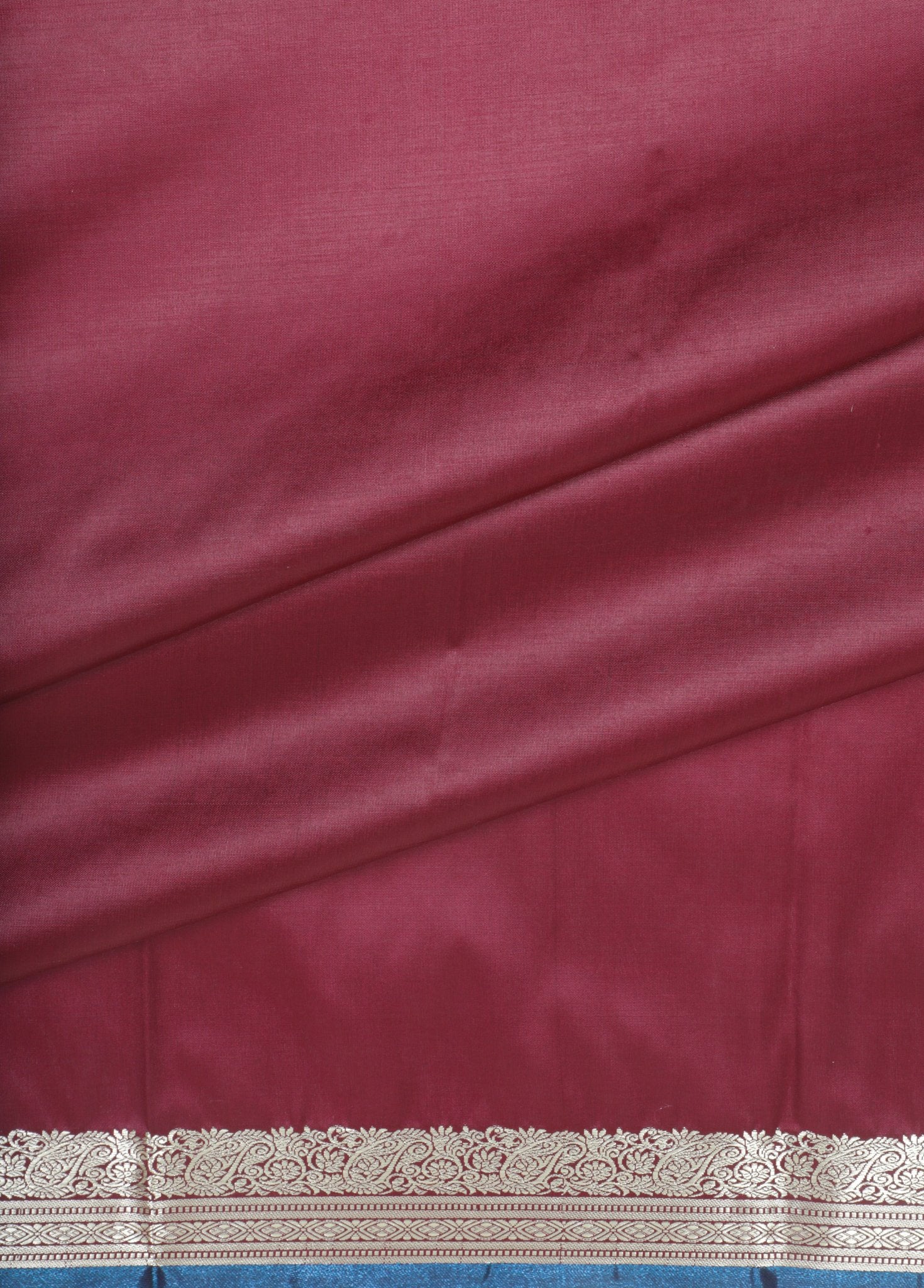 Maroon and Blue Silk Saree with Silver Zari Border