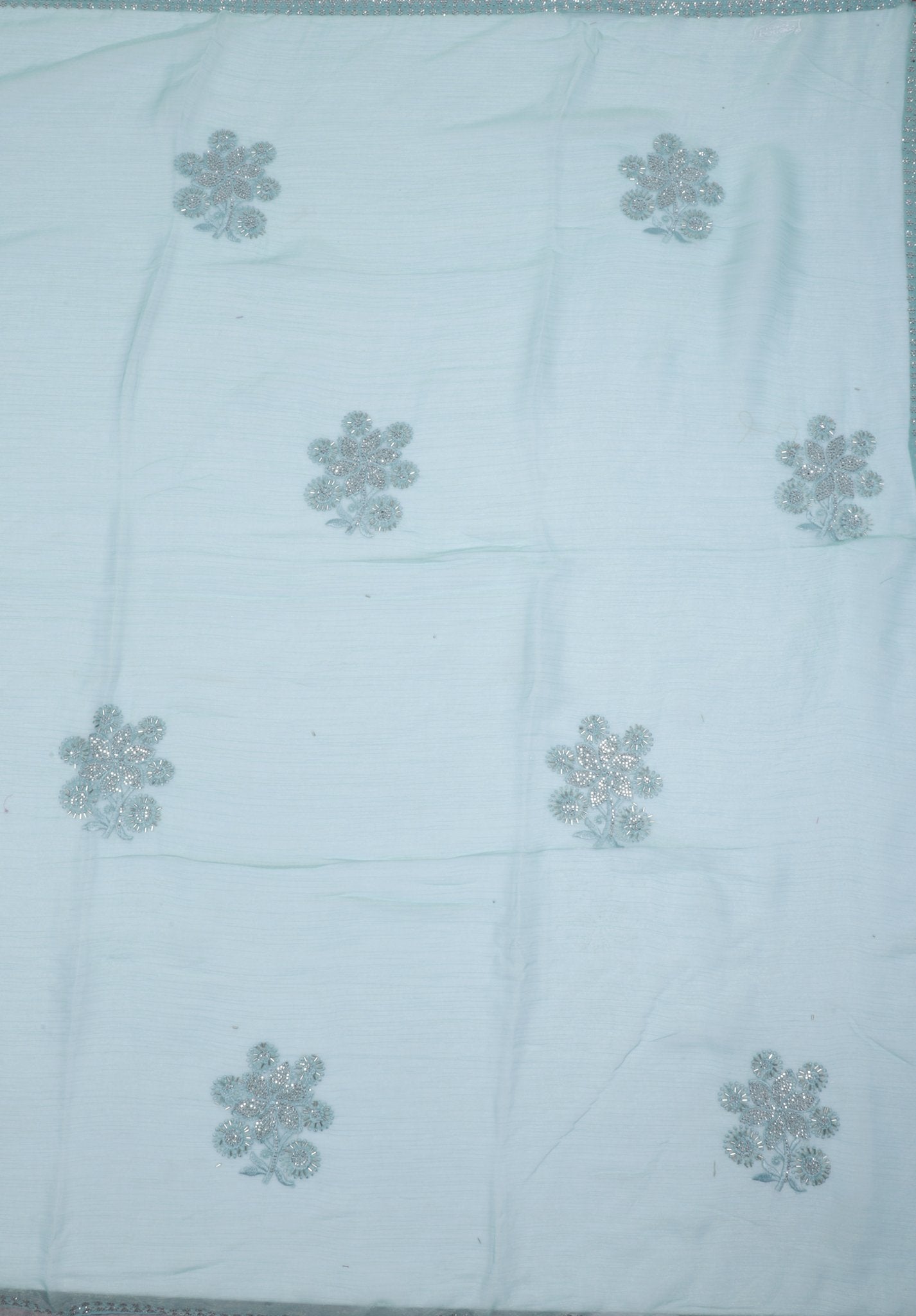 Pastel Blue Organza Saree with Intricate Silver Embroidery