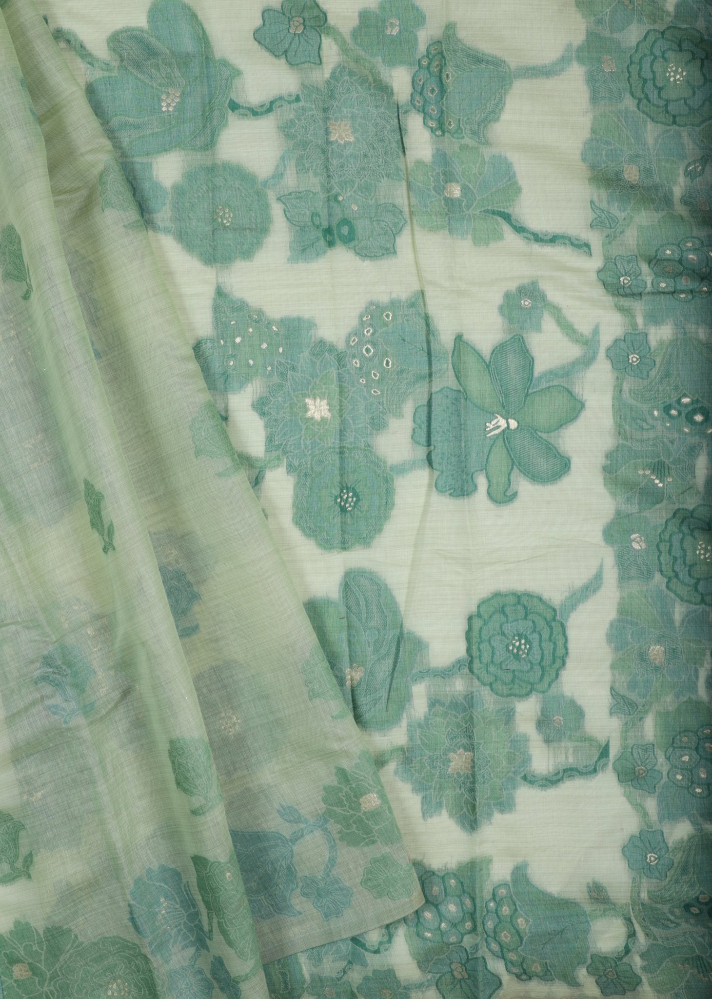 Embrace the elegance of this pastel green organza saree, adorned with exquisite floral embroidery. The sheer fabric drapes beautifully, offering a sophisticated look perfect for festive occasions and evening gatherings. The intricate floral patterns add a touch of charm, making it a must-have addition to your ethnic wardrobe.