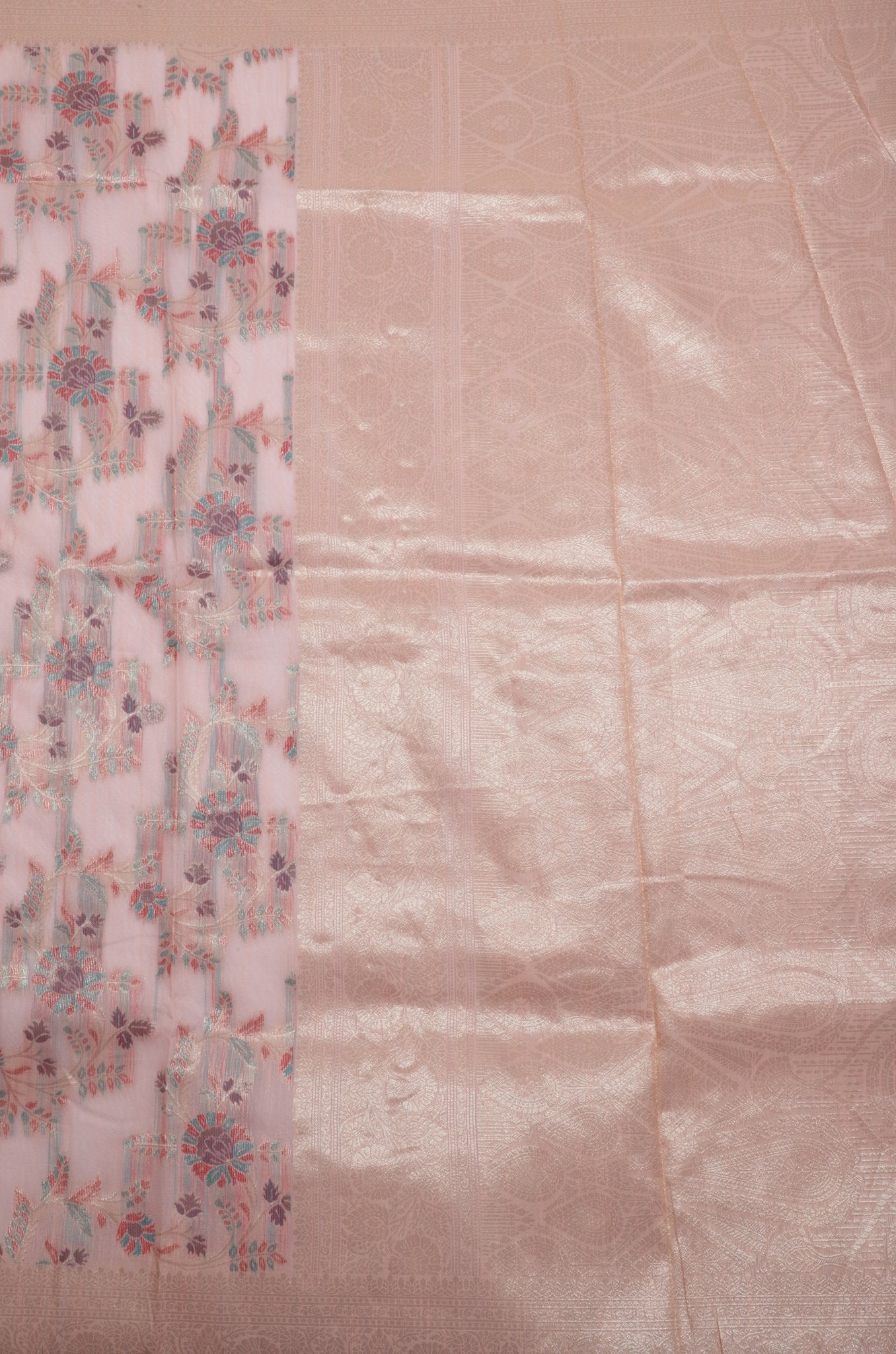 Embrace timeless elegance with this exquisite pastel pink Banarasi silk saree. Adorned with intricate floral motifs, this saree showcases the rich heritage of Banarasi weaving. The luxurious silk fabric offers a smooth texture and a subtle sheen, making it perfect for weddings and festive occasions. The delicate zari border adds a touch of opulence, ensuring you stand out in any gathering.