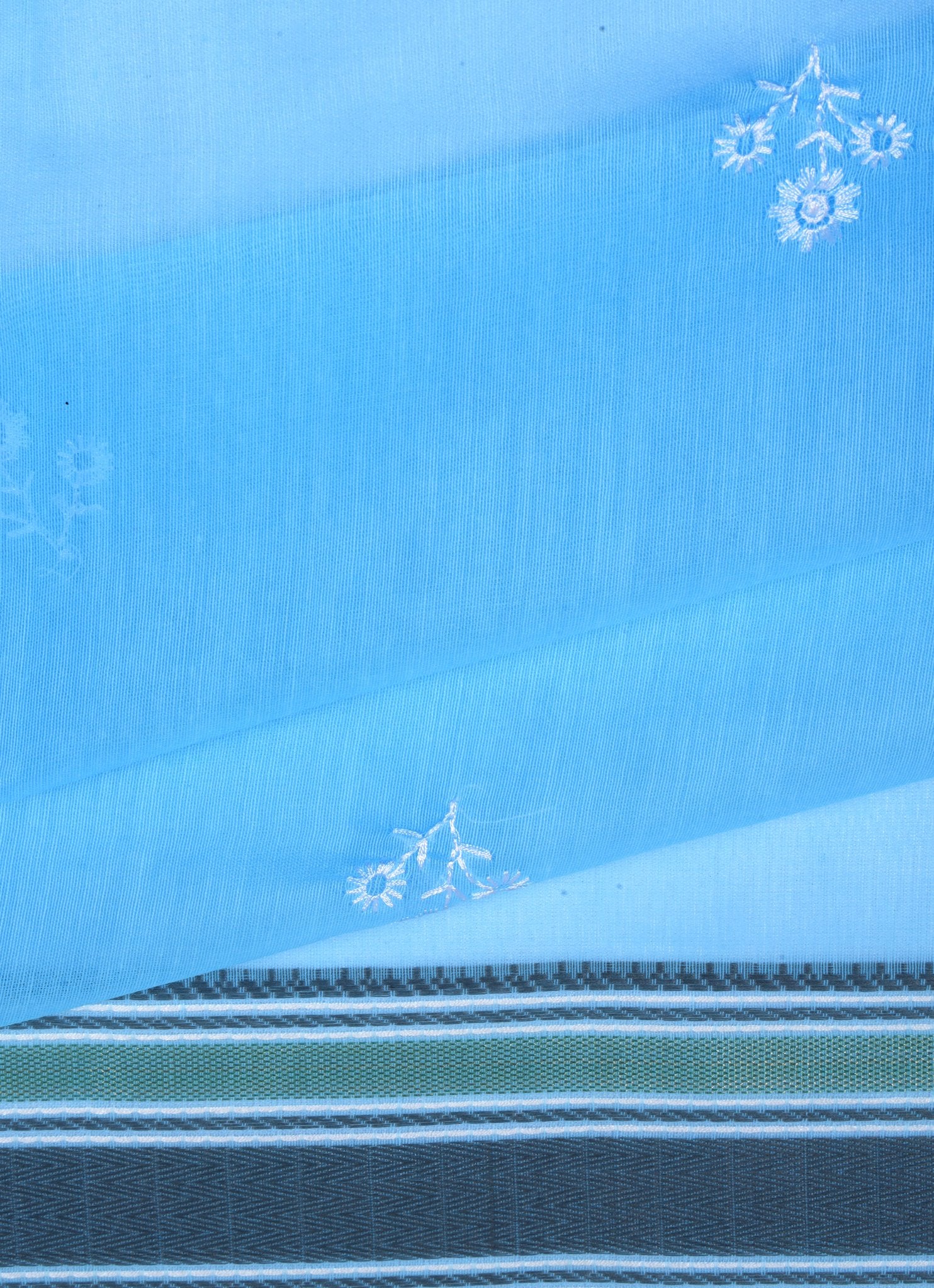 Sky Blue Cotton Chikankari Saree with Striped Border